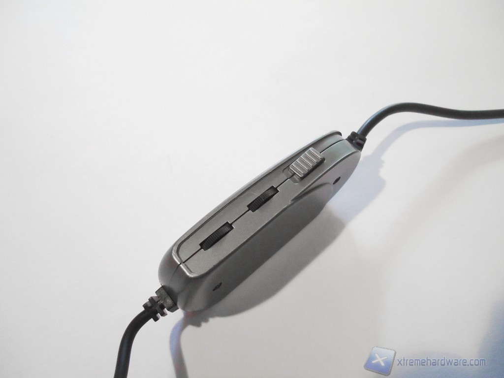 Passando al telecomando a filo lo troviamo molto leggero; è in materiale plastico di colore grigio e presenta un LED di funzionamento al centro del corpo.