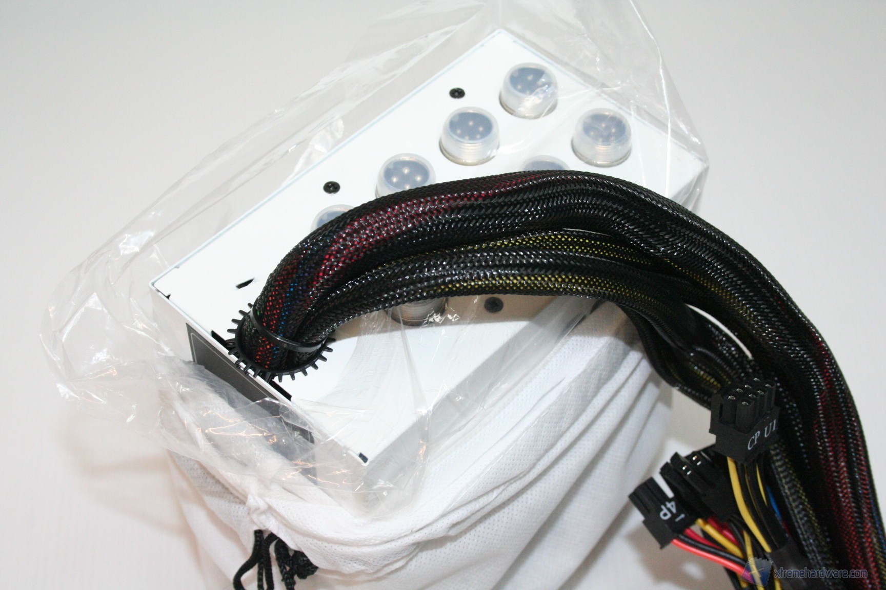 Il design esterno a prima vista sembra ricalcare il fratello minore da 400W, ma ovviamente sono presenti alcune differenze importanti, sia a livello di grandezza che di organizzazione dei cavi modulari, che diversamente da molte soluzioni concorrenti, presentano un attacco con connettore metallico, a ghiera, a quattro e cinque poli, che vengono coperti da un piccolo cappuccio di plastica in caso di inutilizzo. Notiamo l’assenza di feritoie di aerazione addizionali, chiaro indice dell’elevata efficienza del modello. Nella parte superiore è presente la griglia di aerazione della ventola da 140mm, incassata in una struttura con quattro viti a croce, removibile. La verniciatura è eccellente e sono presenti diversi adesivi laterali che ne descrivono il seriale e le specifiche tecniche. La cura per i dettagli è elevata e sebbene ricordi moltissimo il modello NZXT HALE90 850W è presente un doppio imballo, che consiste nella classica bustina esterna con un laccio di chiusura e della plastica interna, forse per proteggerlo da liquidi.