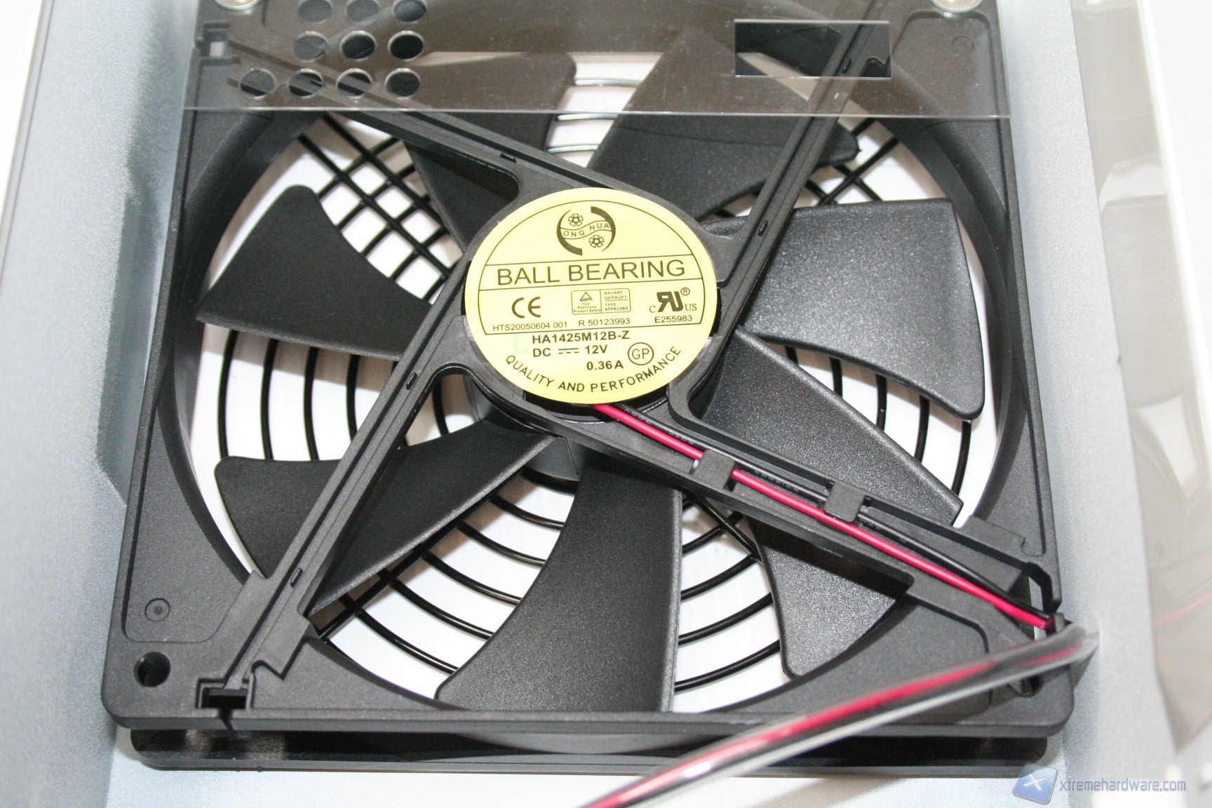 Diversamente dal modello 400W in questo caso si è scelto di adottare una ventola dal diametro maggiore, da 140mm, precisamente la Ong Hua HA1425M12B-Z da circa 2000RPM massimo, anche se questo valore è puramente teorico in quanto è legato alla regolazione in base alla temperature ambiente, che appunto varia molto; con una temperatura ambiente di 25/30 gradi centigradi l’alimentatore non sarà affatto rumoroso, nemmeno sotto carico. La conformazione è classica a 7 pale, il colore è nero ma la parte più interessante ovviamente è la regolazione, fanless fino a 600W di carico! Le pale delle ventole sono di normale tipologia, quindi non è stato necessario introdurre modelli più performanti, anche per via del diametro elevato, che permette di abbassare la rumorosità e migliorare il CFM.