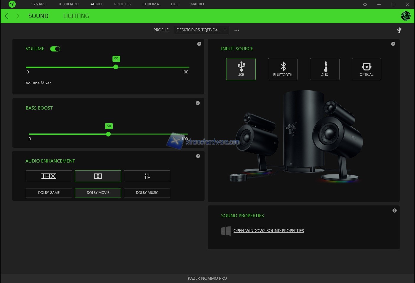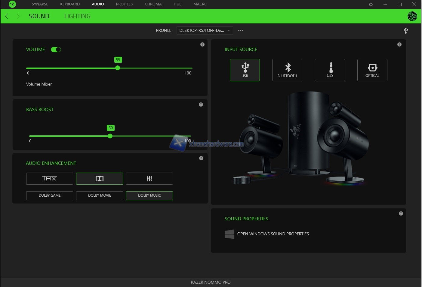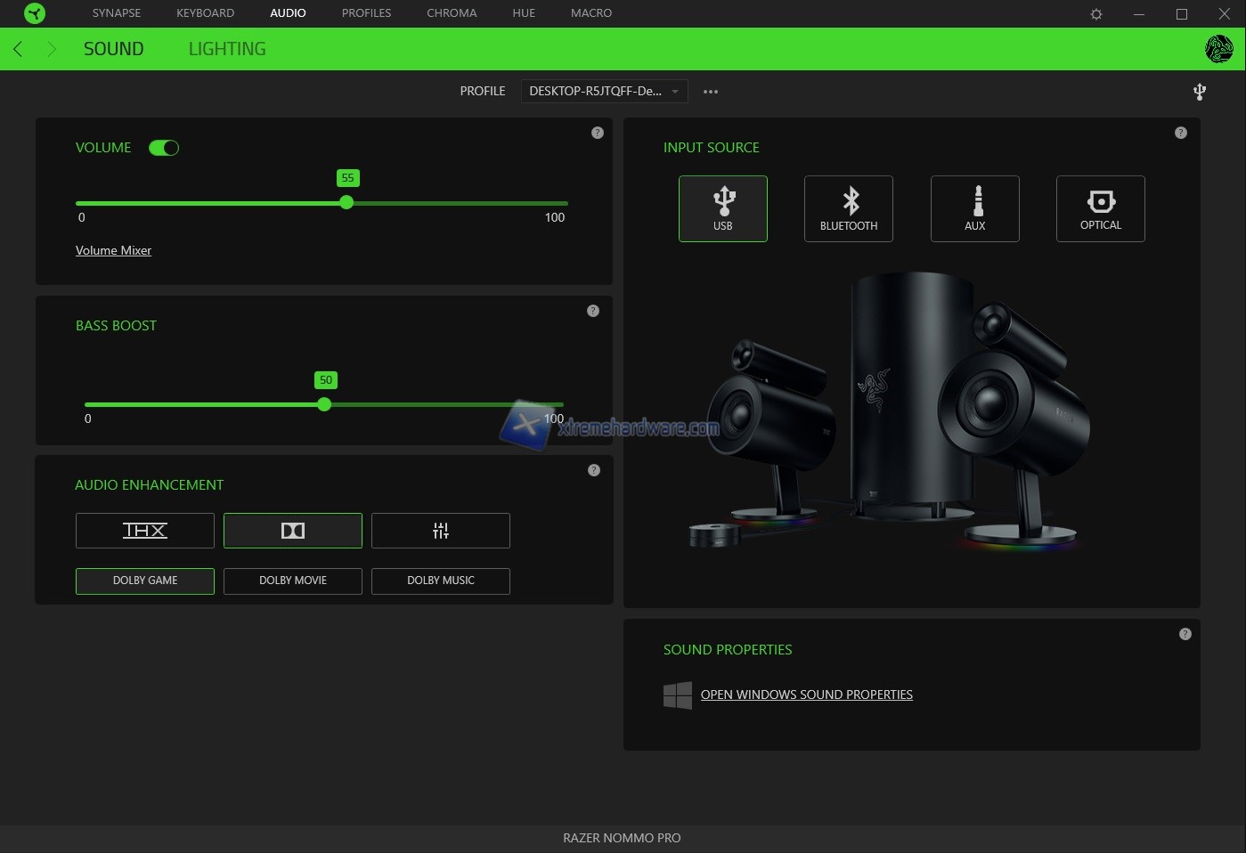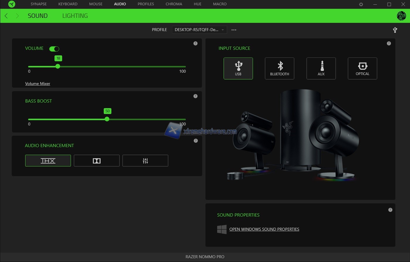 Una volta installato o avviato il Razer Synapse 3 relativo le Razer Nommo Pro avremo a nostra disposizione solo due Menù che sono ‘’Sound’’ e ‘’Lighting’’.